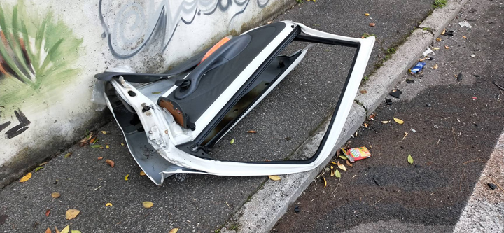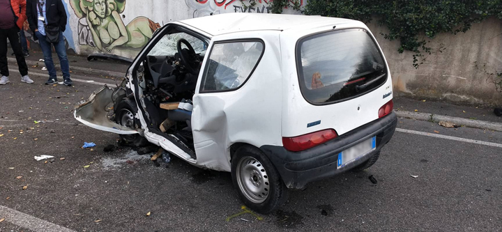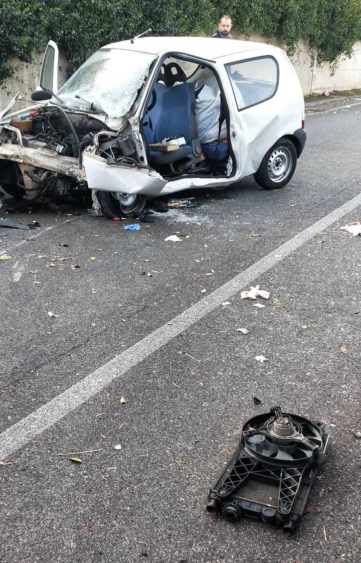 L’impatto è stato violentissimo. Dopo lo schianto il radiatore dell’auto è stato scaraventato a diversi metri dal veicolo.
