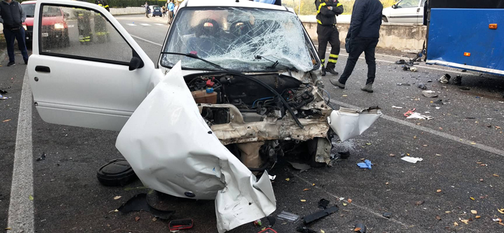A bordo della piccola utilitaria vi erano una donna, L.D.M. di 36 anni, ed un bimbo di 6 anni.