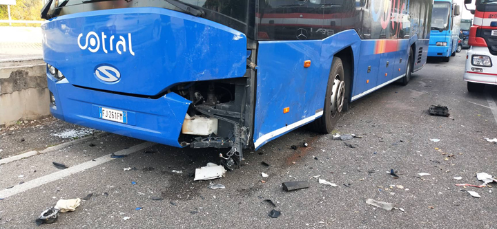 Fortunatamente illesi l’autista ed i passeggeri del bus.