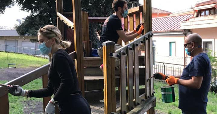 I giochi erano stati restaurati un mese fa grazie ad una bella giornata di volontariato fatta assieme ai dipendenti Amazon.