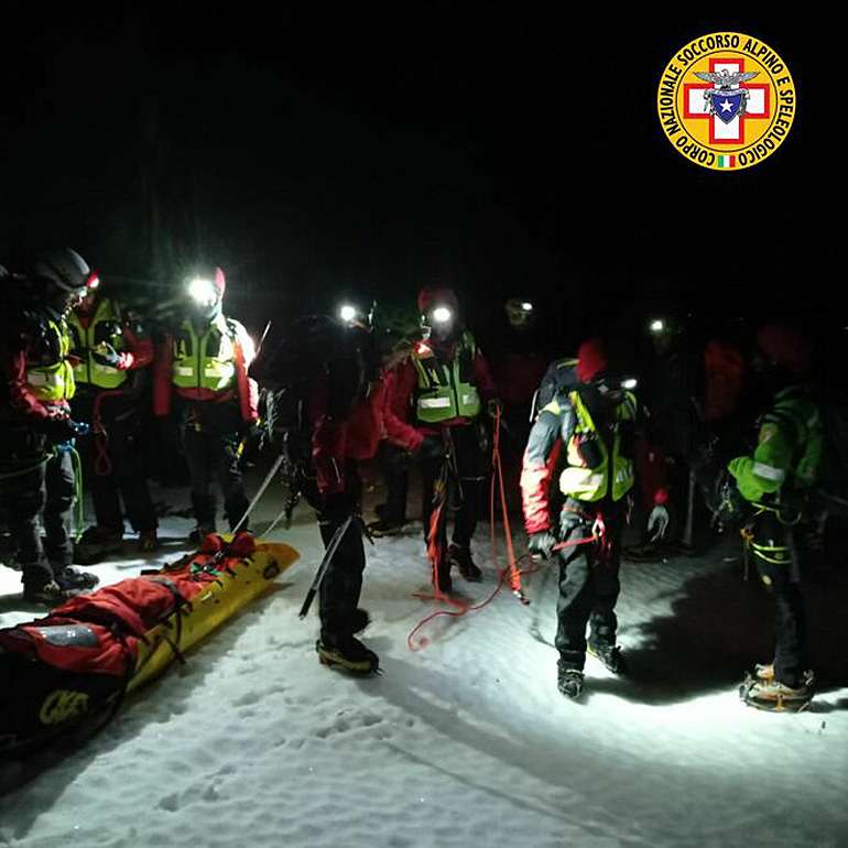 Altre due squadre del soccorso alpino di Sulmona e de L’Aquila si sono messe in cammino sotto la neve per raggiungere gli sventurati. Complessivamente l’operazione ha coinvolto due medici 25 membri del soccorso alpino e speleologico abruzzese.