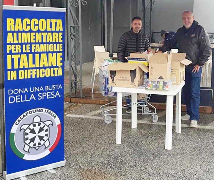 «È partita anche a Colleferro, dove da poco più di un mese è nata la sezione locale di Casapound Italia, la raccolta di beni di prima necessità per le famiglie italiane in difficoltà, un’azione che è ormai un marchio del movimento politico di Simone di Stefano e che in tutta Italia raccoglie e dona alle famiglie italiane meno fortunate generi alimentari di prima necessità.