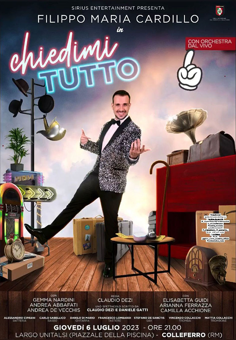 COLLEFERRO – Tra gli spettacoli più interessanti che figurano nel palinsesto delle iniziative di “Colleferro Estate 2023”, figura sicuramente l’appuntamento con “Chiedimi Tutto”, in programma Giovedì 6 Luglio, sempre alle 21,30, in Largo Unitalsi a Colleferro.