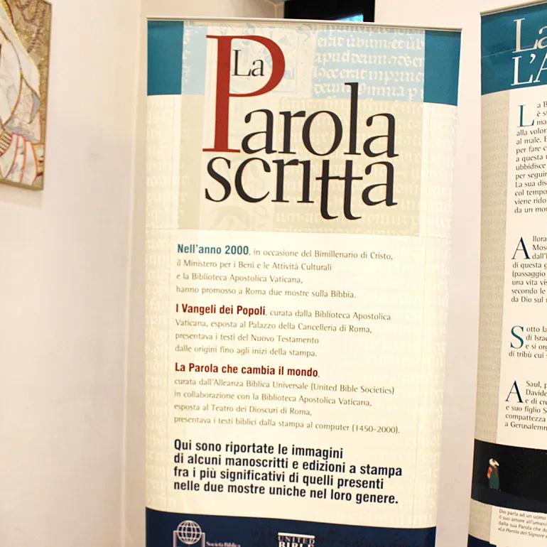 .La Mostra è costituita da venticinque pannelli che raccontano la Bibbia: la storia del testo, dalle sue origini fino all’età moderna e contemporanea, con particolare attenzione per la storia della traduzione e della diffusione della Bibbia in Italia.