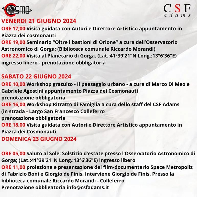 Prenotazione obbligatoria info@csfadams.it oppure cosmophotofest@gmail.com