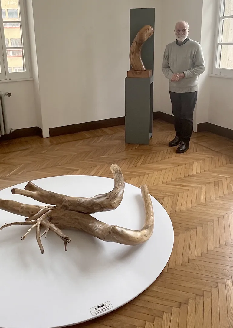 Il caso ha voluto che il tronco trovato fosse di ginepro, una pianta dalle profonde radici storico-mitologiche che ha accompagnato l’umanità attraverso i secoli., trovando un posto di rilievo in varie tradizioni culturali e spirituali, evocando un senso di riverenza e mistero. Un connubio di grande rilevanza perché l’artista ha percepito, nel ritrovamento di un reperto ligneo, l’esigenza, non di seguire una propria idea di raffigurazione e forma utilizzando il legno come materia, ma solo togliere il superfluo per mostrare ciò che è già presente.