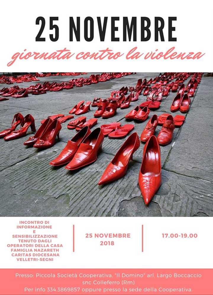 COLLEFERRO – Nel pomeriggio di oggi, 25 Novembre, in occasione della “Giornata Internazionale per l’eliminazione della violenza contro le donne”, la Caritas Diocesana propone di ritrovarsi, alle ore 17, presso i locali gestiti dalla piccola cooperativa sociale “Il Domino” Largo Boccaccio a Colleferro.