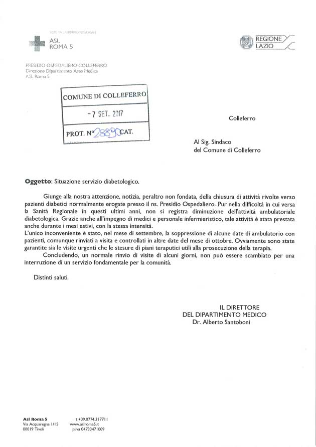 Nella mia nota stampa, io ho parlato di “depotenziamento dell’ambulatorio” e non di “chiusura del reparto”, ma questo non sposta il nocciolo della questione, che è quello di aver creato un ulteriore problema ai tanti malati diabetici che già vivono quotidianamente gli impatti negativi della loro malattia.