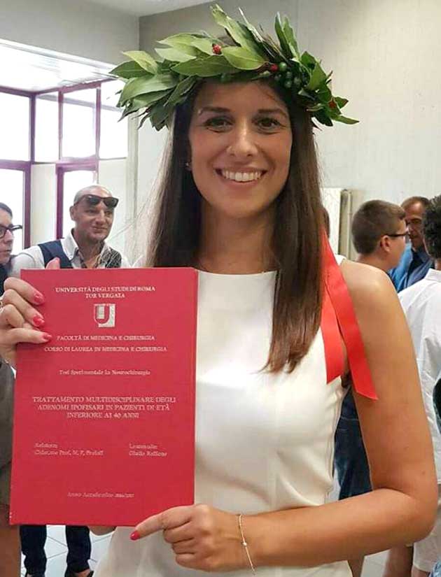 COLLEFERRO (RM) – Io scorso 24 Luglio a Roma, presso l’Università di Tor Vergata si è laureata brillantemente in Medicina e chirurgia, con la votazione di 110 e lode, Giulia Raffone discutendo una tesi di laurea in neurochirurgia sul “Trattamento multidisciplinare degli adenomi ipofisari”.