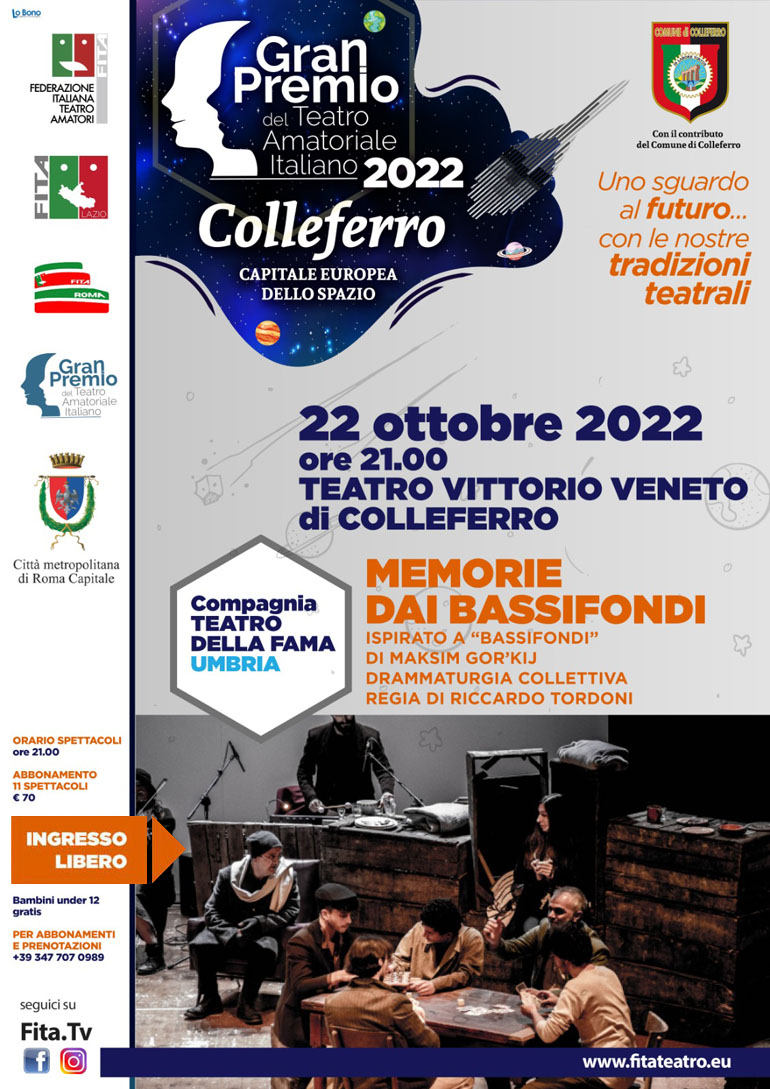 Colleferro. Gran Premio del Teatro Amatoriale. Sabato 22 ottobre alle ore 21 in scena “Memorie dai Bassifondi” della compagnia umbra “Teatro della Fama”