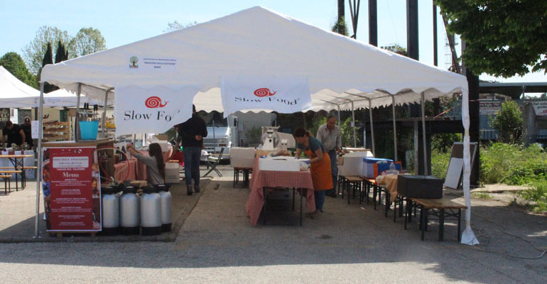 Per pranzo tutti hanno rivolto l’attenzione agli stand di Slow Food con la mitica Francesca Litta della Condotta Slow Food Territori del Cesanese.