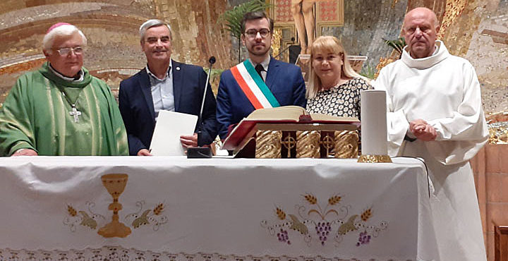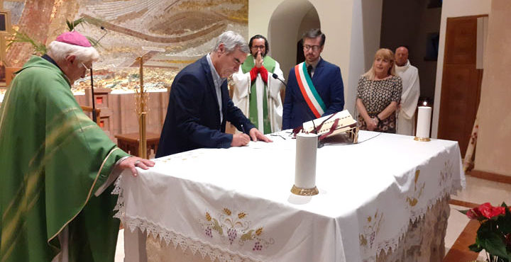 Nella giornata di domenica, dopo la SS. Messa officiata da S.E. Mons. Vincenzo Apicella con il Parroco Don Augusto Fagnani, alla presenza del Sindaco Pierluigi Sanna e Claudio Gessi del Ce.R.S – Centro Ricerche Sociali, si è proceduto alla Cerimonia di Donazione Ufficiale alla Parrocchia del dipinto “Madonna del Giubileo” dell’artista Salvatore Fiume (1995), con l’apposizione delle firma nell’atto ufficiale.