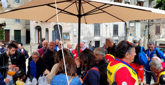 Ad accogliere i motociclisti in Piazza Regina Margherita, di fronte alla bellissima Colleggiata, l’Ass. alla Cultura ed Istruzione del Comune di Carpineto Romano Emanuela Massicci, a cui gli Organizzatori hanno fatto omaggio di una targa ricordo.