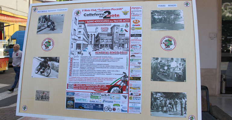 La manifestazione fortemente voluta, ideata e promossa dall’A.D.S. Moto Club Tommaso Piccirilli in collaborazione con la Federazione Motociclistica Italiana ed il Comitato Regionale Lazio FMI – Presidente Paolo Pelacci, con il fattivo ausilio della locale Ass. Pro Loco presieduta da Cristina Sabbioni, il Patrocinio del Comune di Colleferro e il sostegno di tanti sponsors.