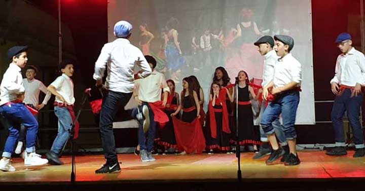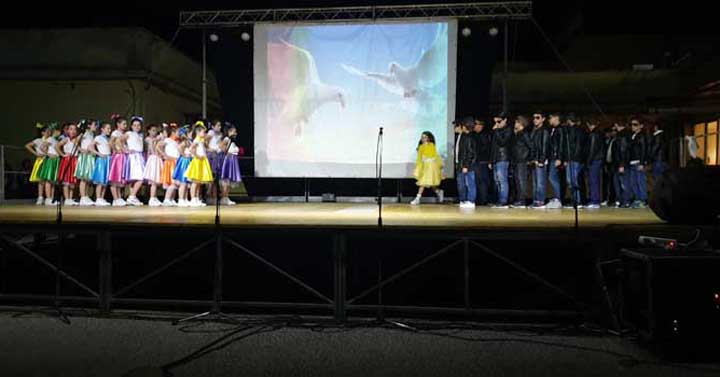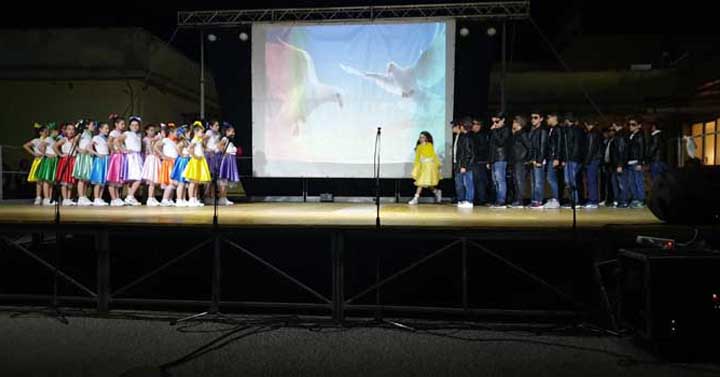 La conclusione dello spettacolo ha visto tutti gli alunni sulla scena che si sono cimentati in una coreografia data dalla movenza ritmica delle mani.