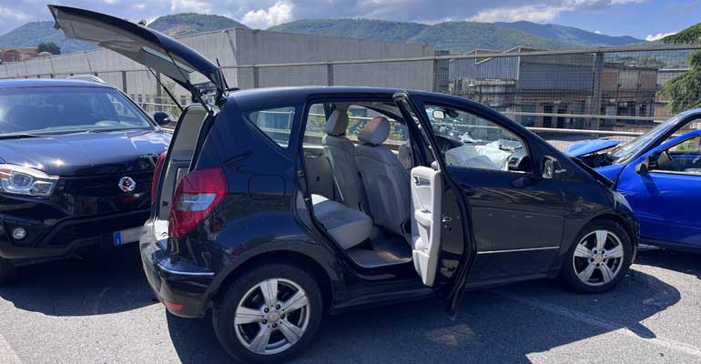 A seguito dell’improvviso impatto una terza auto, una Ssangyong Korando nera che seguiva la Classe A, non faceva in tempo ad arrestare la marcia e finiva per tamponare lievemente l’auto che la precedeva.