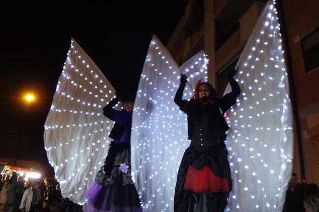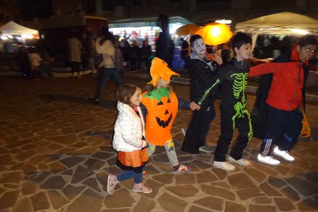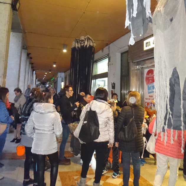 In Piazza Caduti di Nassiriya la festa è cominciata già dal mattino con tante bancarelle a fare da cornice. Nel pomeriggio grande la partecipazione con tantissimi bambini mascherati che con i loro cestini a forma di zucca giravano per i negozi pronunciando l’immancabile frase: “Scherzetto o dolcetto” ottenendo tante buone caramelle! Bravissimi gli artisti di strada che hanno intrattenuto il pubblico … dal giocoliere al mago e le stupende farfalle trampoliste con le ali magicamente illuminate a rischiarare il buio che pian piano avvolgeva la piazza, creando magiche e sinistre atmosfere.