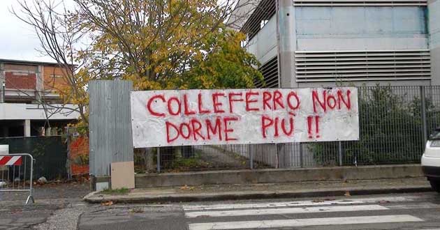 Dopo il passaggio “indisturbato” di una grandissima gru, avvenuto qualche settimana fa, “Rifiutiamoli” è corso ai ripari, e così non appena giunta la notizia che un trasporto eccezionale era in procinto di giungere agli inceneritori, è stato allestito un presidio permanente – all’insegno dello slogan “Colleferro non dorme più” – con l’intento di «fermare l’arrivo di qualsiasi camion che porti materiale per la manutenzione degli inceneritori…»