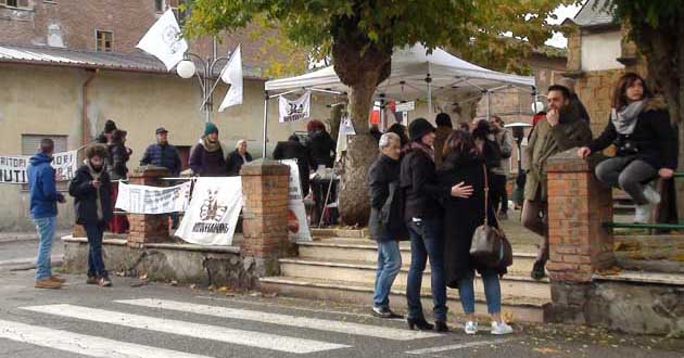 Mentre giù, allo Scalo, i presidianti vigilavano; su, a Colle Sughero, gli operai degli inceneritori provvedevano ad erigere una transenna all’ingresso del parcheggio antistante gli impianti.