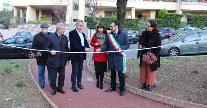 Taglio del nastro, anzi della corda, per una nuova vita di questo parco cittadino per anni lasciato nel degrado, unitamente a quello di Via delle Betulle che sarà oggetto di un prossimo intervento.