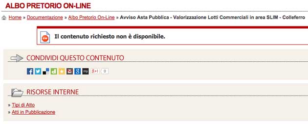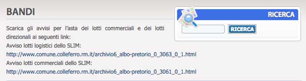 Clikkando su ciascuno dei due link veniamo rimandati a questa pagina (sito istituzionale del Comune di Colleferro):