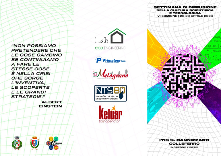 COLLEFERRO – Si aprirà Mercoledì 26 Aprile alle ore 10 la sesta edizione della “Settimana di diffusione della Cultura Scientifica e Tecnologica”, organizzata come ogni anno dall’Itis Cannizzaro con il patrocinio del Comune di Colleferro.