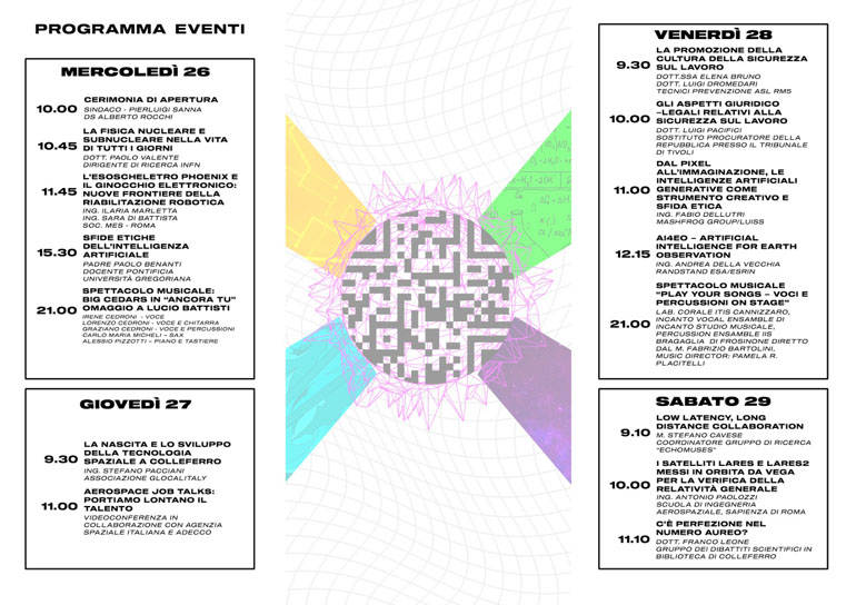 - 9.30 – La nascita e lo sviluppo della Tecnologia Spaziale a Colleferro