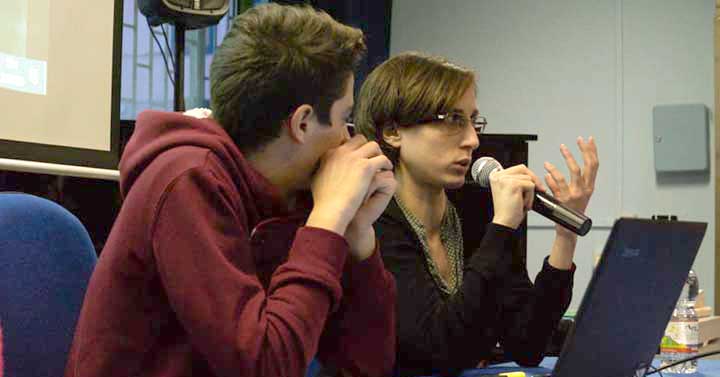 L’incontro, organizzato dalla Prof.ssa Patrizia Savarese, con la partecipazione del Dirigente Scolastico Prof. Alberto Rocchi, di docenti, studenti e cittadini interessati alla figura e all’opera olivettiana, ha preso l’avvio dalla lettura di alcuni brani tratti dallo scritto di Olivetti “Noi cerchiamo il silenzio”, a cura di alcuni studenti della classe III A del Liceo Tecnologico, accompagnati al pianoforte dallo studente Simone Pasquini.