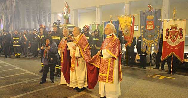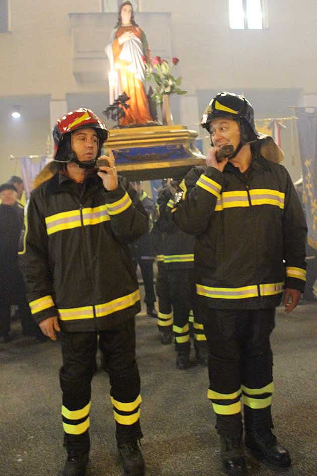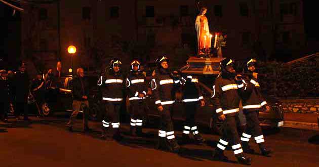 La processione è partita dal Tempietto di S. Barbara, dove per tutto l’anno viene tenuta la statua raffigurante la Santa, che portata a braccia dai Pompieri della locale caserma ha attraversato la città, seguita da una forte partecipazione di cittadini ed accompagnata dalle musiche eseguite dalla Banda Filarmonica.