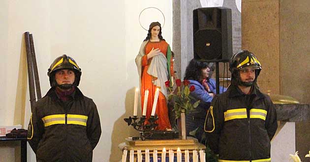La processione è poi entrata nella Chiesa di Santa Barbara dove si è tenuta la Santa Messa officiata dal Parroco Mons. Luciano Lepore.