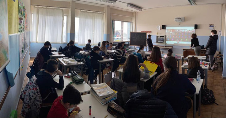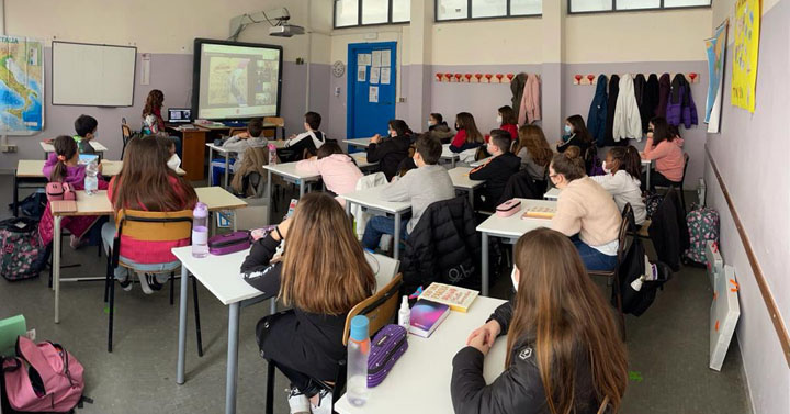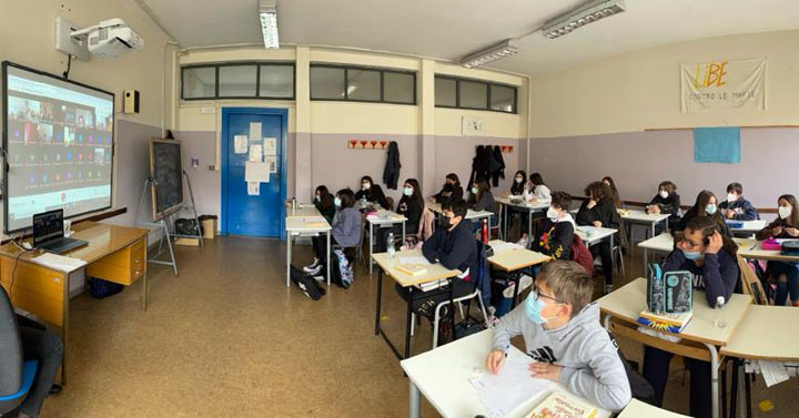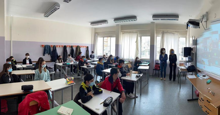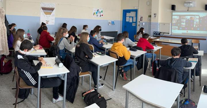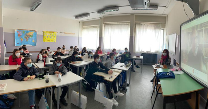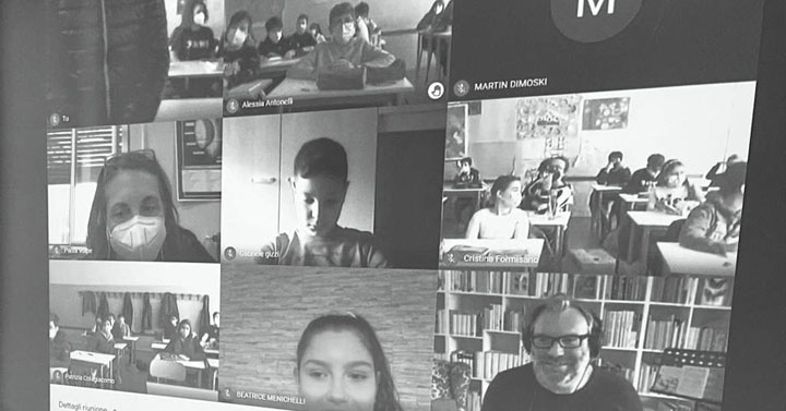 Matteo Corradini ha letteralmente “ stregato” i ragazzi, con le sue simpaticissime “chicche”, snocciolando battute inaspettate ed esilaranti rivelandosi un vero e proprio “mattatore”, che ha intrattenuto le numerose classi coinvolte, collegate ciascuna rigorosamente dalla propria aula!
