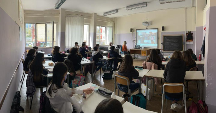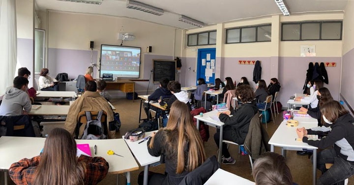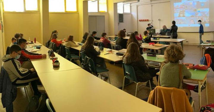 È una storia toccante, che ha commosso gli alunni… ma che Matteo ha saputo ben stemperare durante tutto l’incontro “Virtuale”.