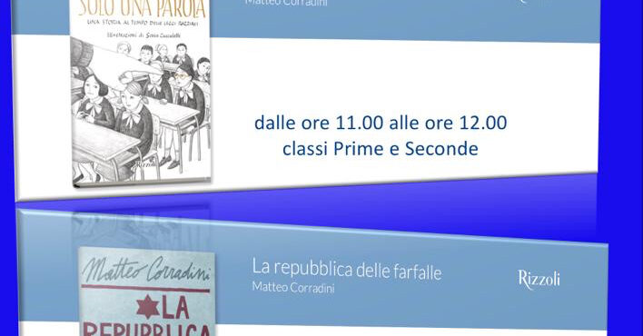 I libri di Corradini sono proprio rivolti ai ragazzi e sono pubblicati in Italia, Germania, Stati Uniti e Spagna. Il Nostro ha raccontato ai ragazzi, che come ebraista si occupa di mistica ebraica e di Shoah; in particolare i suoi studi sul campo di concentramento di Terezin, lo hanno portato a recuperare molti oggetti e strumenti musicali . Ha raccontato degli otto anni di studio e ricerche per scrivere il libro “La repubblica delle farfalle” e di tutte le volte che ritorna in visita a Terezin.