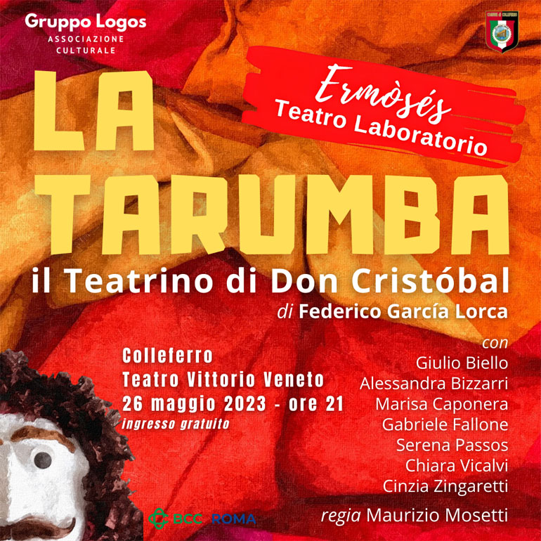 COLLEFERRO – Nel 20° anno di attività Ermòsés Teatro Laboratorio, diretto da Maurizio Mosetti, a cura dell’Associazione Culturale Gruppo Logos, presenta “La Tarumba” – Il teatrino di don Cristóbal di Federico García Lorca.