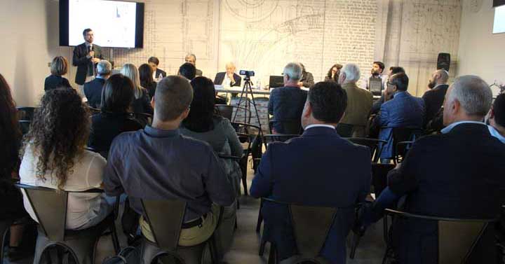 Presenti il Sindaco Pierluigi Sanna e gli Assessori Rosaria Di Biase, Giulio Calamita ed Umberto Zeppa, i relatori Ing. Maurizio Morandi e la Prof.ssa Marzia Marandola – Università La Sapienza di Roma, l’Arch. Luca Calselli – Autore del Progetto “Colleferro ’900” con il quale Colleferro ha visto assegnarsi il titolo di Città della Cultura Lazio 2018 insieme ad Artena, Labico, Paliano e Valmontone, Dario Biello – Coordinatore del Progetto, Giorgio La Corte – co-fondatore di Forma & Cemento, Emilia della Guardia Presidente di Colleferro commerciale, moderatore dell’incontro Luciano Rea – ADD – Distretto del design.