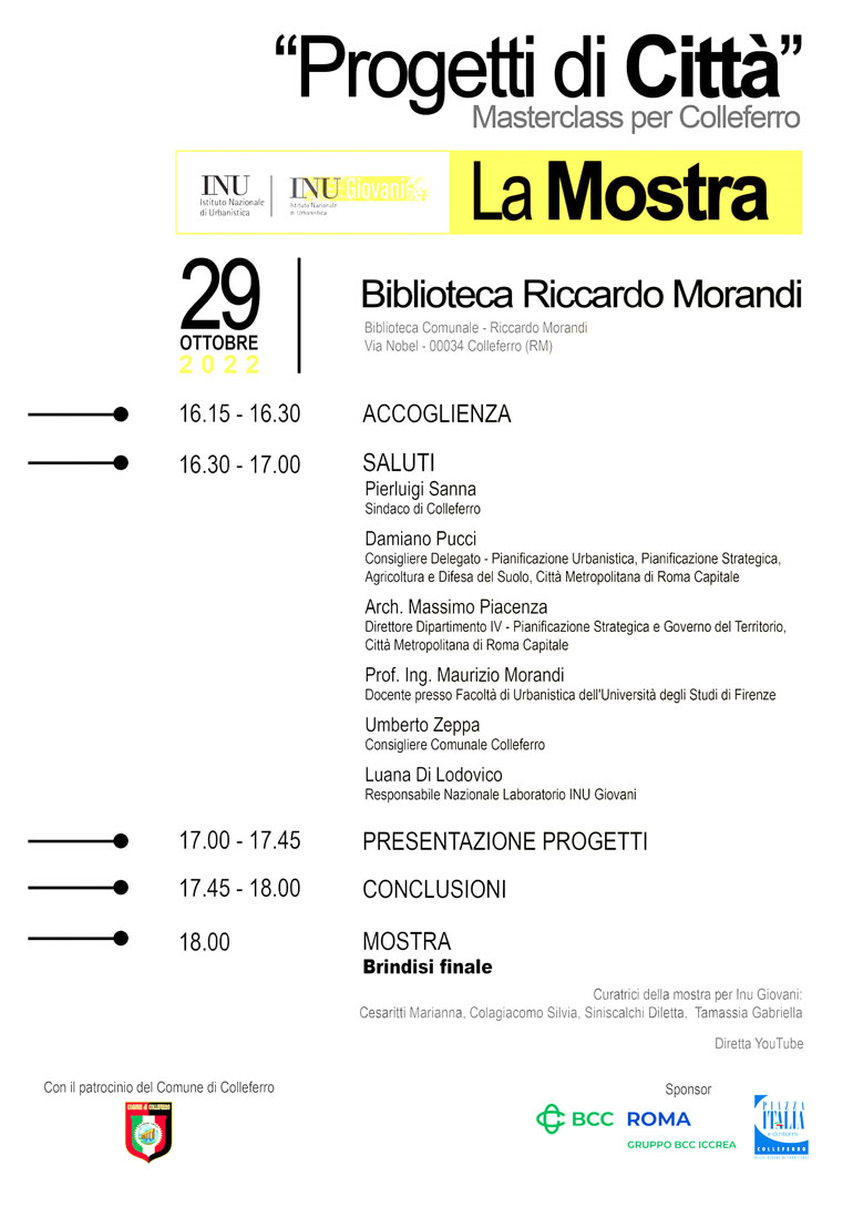 Colleferro. Masterclass “Progetti di città”. Inu Giovani presenta la mostra dei lavori, oggi, 29 Ottobre 2022 presso la Biblioteca Comunale Riccardo Morandi