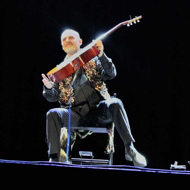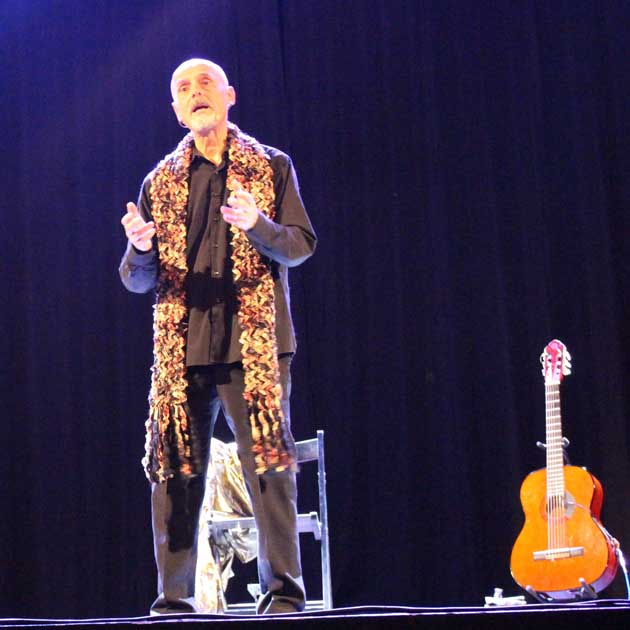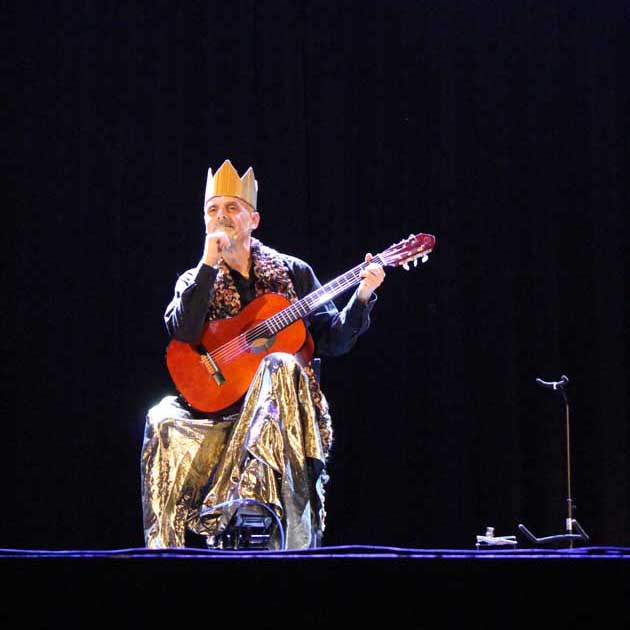 Una scenografia essenziale, una chitarra, un’armonica e la bravura di Maurizio Mosettti per uno spettacolo che si riallaccia all’ideale ottocentesco, dove le fiabe erano senza destinazione d’età, ma “racconto di meraviglie e piena espressione dei bisogni poetici”: fiabe e leggende della tradizione popolare italiana, racconti di giovani immortali, zappatori, musicisti, barbieri, orologiai, figlie da maritare, bambini Petrilli, ragni e “sarcicce”. Storie di ieri, di oggi e per sempre, in un giro armonico di “re”.