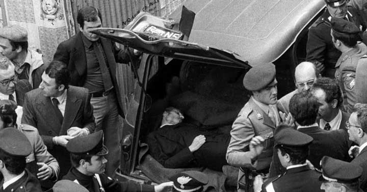 Il suo cadavere fu ritrovato a Roma il 9 Maggio, nel bagagliaio di una Renault 4 parcheggiata in Via Caetani, una traversa di Via delle Botteghe Oscure, a poca distanza dalla sede nazionale del Partito Comunista Italiano e da Piazza del Gesù, sede nazionale della Democrazia Cristiana.