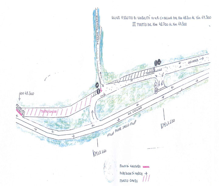 COLLEFERRO – Dal pomeriggio di Lunedì 17 Giugno, una serie di interventi ha cambiato la circolazione stradale sulla Statale Casilina nel tratto compreso tra il bivio per l’Autostrada A1 e quello per il parco giochi di Valmontone, tra il Km 48,200 al Km 47,300.