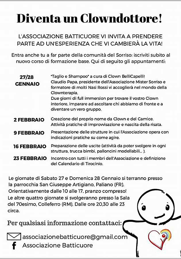 Colleferro | Paliano. Diventa un clown-dottore! Apprezzabile iniziativa dell’associazione “Batticuore”