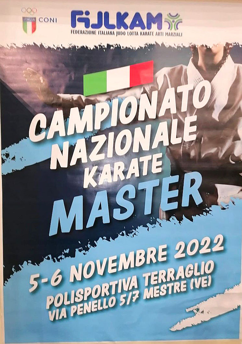 COLLEFERRO – Nello scorso weekend del 5-6 Novembre, a Mestre, si è svolto il Campionato italiano Fijlkam Master (karatè e parakarate), nelle specialità Kata e Kumite, giunto quest’anno alla nona edizione.