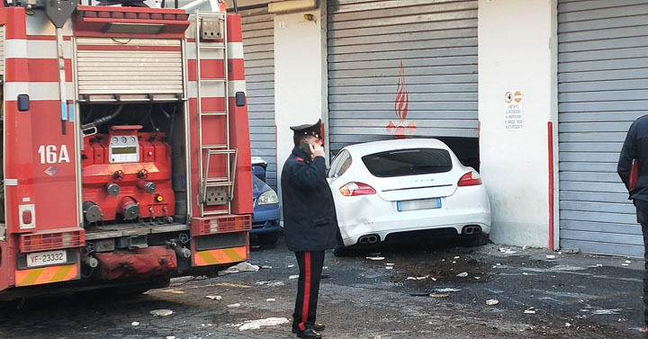 Colleferro. 77enne perde il controllo della Porsche e sfonda la saracinesca dell’autorimessa della caserma dei Vigili del Fuoco