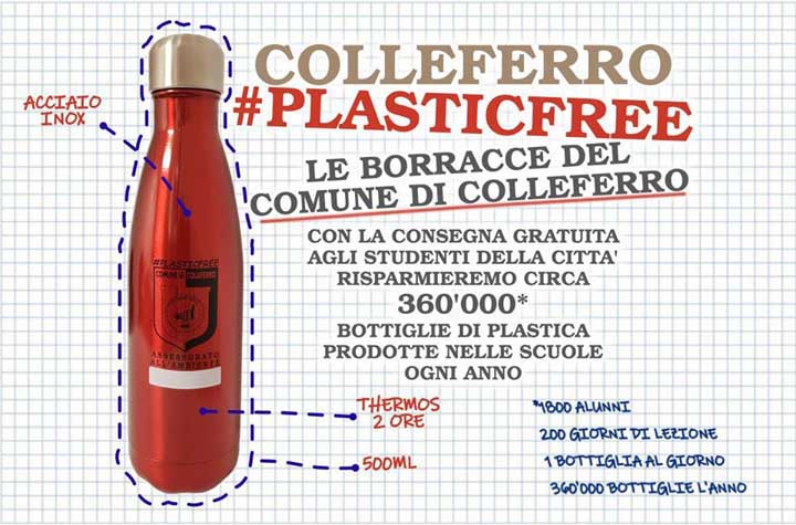 … considerando che all’iniziativa partecipano entrambi gli Istituti Comprensivi della città, se pensiamo che a Colleferro ci sono 1800 alunni delle scuole di primo grado e che se ogni alunno risparmia una bottiglietta di plastica al giorno, moltiplicati per i 200 giorni di scuola, avremo un risparmio di 360mila bottigliette di plastica per anno scolastico…