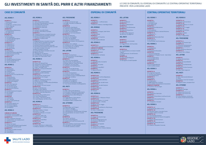 Nella seguente immagine tutti gli investimenti del Pnrr nella Sanità del Lazio (click per ingrandire)