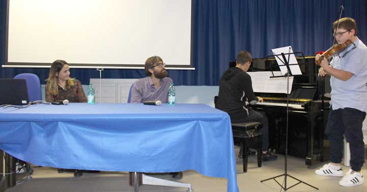 Le letture di alcuni brani del libro a cura di Tiziano Coluzzi e Maria Elena Mattia e gli accompagnamenti musicali di Simone Pasquini al pianoforte e di Flavio Lleshi al violino, studenti dell’Istituto, hanno reso ancora più emozionante la presentazione, cui ha fatto seguito un interessante dibattito con il pubblico in sala, prima che l’autrice si concedesse al firma copie del libro.