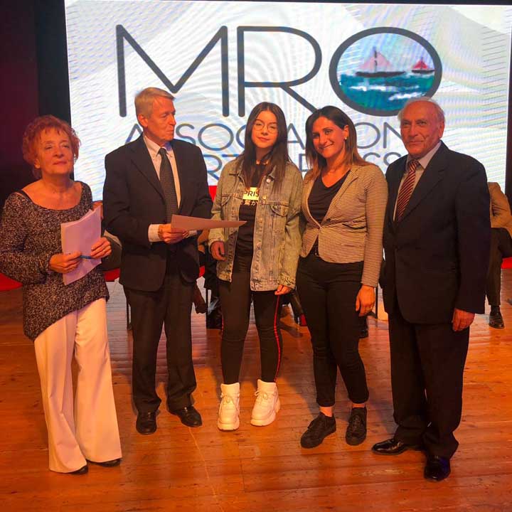 Impossibilitata ad essere presente alla cerimonia, ha ritirato il Premio la compagna di classe Cecilia Morgia accompagnata dalla coordinatrice di classe Michela Gabrieli.