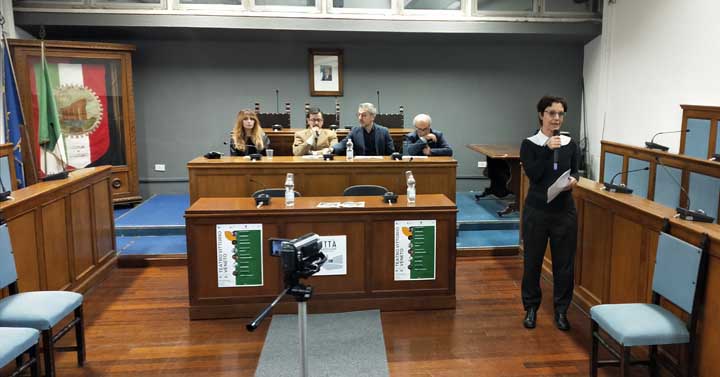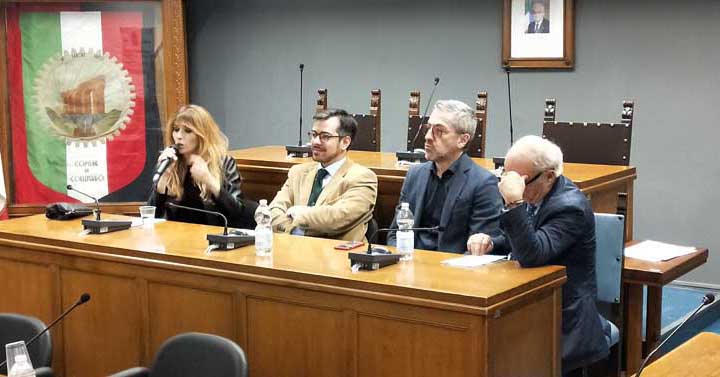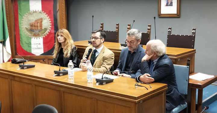 Come consuetudine l’incontro con i giornalisti ha avuto luogo nell’Aula consiliare del Comune, alla presenza del Sindaco Pierluigi Sanna, dell’Ad di Atcl (Associazione Teatrale fra i Comuni del Lazio) Luca Fornari, del Direttore artistico Alessandro Berdini e della bella e brava attrice Loredana Cannata (tra i protagonisti della pièce “La Scomparsa Di Majorana” in palinsesto il 23 Febbraio 2020).