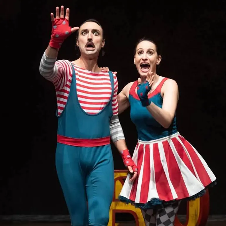 Cesare e Attilina, due ex trapezisti ormai in pensione, un tempo compagni di vita e di palcoscenico, vengono chiamati per esibirsi in una “serata d’onore” e ricevere l’ambito premio di tutti i circensi: il trapezio d’oro. Non si vedono da oltre trent’anni, dal giorno in cui il destino li ha divisi per sempre (per sempre… fino ad oggi!). Viaggiando a ritroso nel tempo attraverso l’escamotage dei flashback, le due “lucciole del circo”, come venivano chiamati nel momento del loro massimo splendore, si raccontano al pubblico accarezzando tutti i capitoli più significativi della loro relazione: dal primo incontro da bambini, allo sbocciare del loro amore fanciullesco, fino all’apice del loro percorso artistico in età adulta, che – “coup de theatre” – coincide esattamente con il loro distacco. Ma cosa riserverà davvero questo premio? In pista, però, non vedremo avvicendarsi soltanto i due protagonisti, ma tanti altri personaggi che gravitano dentro e fuori lo chapiteau (Dimitri, il lanciatore di coltelli, Fortuna la veggente, Betta la domatrice di leoni, Mariuccio bello bello, il clown), in una commedia musicale tragicomica che si fa metafora di un’arte, come quella circense, che, oggi più che mai, ci appare come un “tramonto straordinario” (chi non ama contemplare i tramonti?) per narrare la linea sottile che intercorre fra il cielo e la terra, il palco e la quotidianità, fra la realtà e la fantasia. Un inno allo spettacolo dal vivo e a tutti gli artisti del circo che, proprio come i teatranti, scrivono sull’acqua e nel cuore del pubblico. In un momento storico come quello che stiamo vivendo, caratterizzato da sempre più rapidi cambiamenti causati dalle inarrestabili evoluzioni tecnologiche e in cui, anche nel campo artistico, si respira il timore della sostituzione dell’umano da parte dell’Intelligenza Artificiale, dell’uomo da parte di una macchina perfetta, qual è il compito del teatro e dei suoi attori, spesso e volentieri, così imperfetti? La nostra personalissima risposta è che, oggi più che mai, si avverta la necessità di salvaguardare almeno una forma di intelligenza imprescindibilmente umana e della quale vorremmo continuare a poter disporre, ovvero “l’intelligenza sentimentale”, dato che, quando si parla di emozioni, non c’è surrogato tecnologico che tenga. Ebbene, la storia che abbiamo scelto di raccontare è figlia di un’urgenza creativa genuina e onesta che, alla fin fine, risponde solo alle regole del cuore. “Il futuro non è sempre avanti, a volte bisogna fermarsi e tornare indietro per raggiungerlo”.