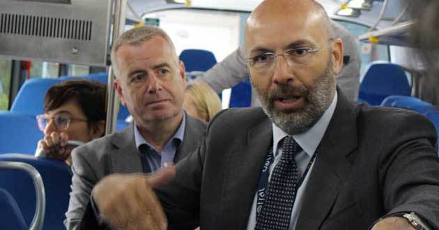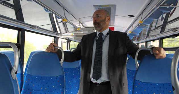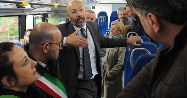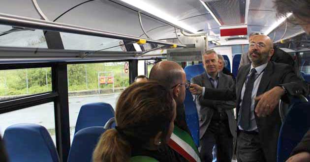 Poi con grande disponibilità l’Amministratore Delegato Arrigo Giana ha invitato i Sindaci e gli intervenuti tutti a salire su un pullman e ne ha illustrato le caratteristiche: i nuovi bus sono tutti Euro 6, dotati di telecamere di video sorveglianza a bordo e di ausilio alla guida.