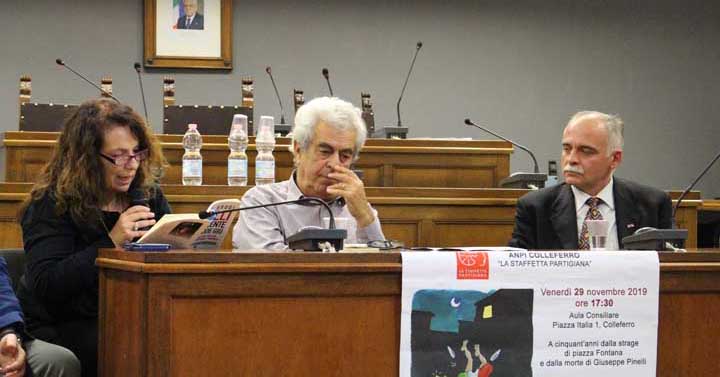 COLLEFERRO (Eledina Lorenzon) – È stato presentato sul finire dello scorso mese di Novembre, presso l’Aula Consiliare del Comune di Colleferro gremita di pubblico, il libro del giornalista Paolo Brogi dal titolo “Giuseppe Pinelli, l’innocente che cadde giù”– Caselvecchi Editore a cinquant’anni dal tragico evento della strage di Piazza Fontana a Milano, avvenuta il 12 Dicembre 1969 a cui seguì, qualche giorno dopo, esattamente nella notte tra il 15 e 16 Dicembre, la morte del ferrovie Giuseppe Pinelli , precipitato dal quarto piano della Questura di Milano durante un interrogatorio.